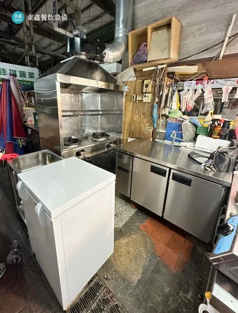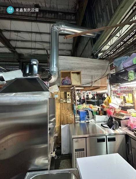 位於台中第三市場的舊攤販因為爐具的火力不強,加上沒有抽風的功能,所以油煙四散,相當不衛生,因此找到東鑫餐飲設備改為新的熱炒煙罩炒台,將油煙排放到室外,攤位也比較乾淨舒適。